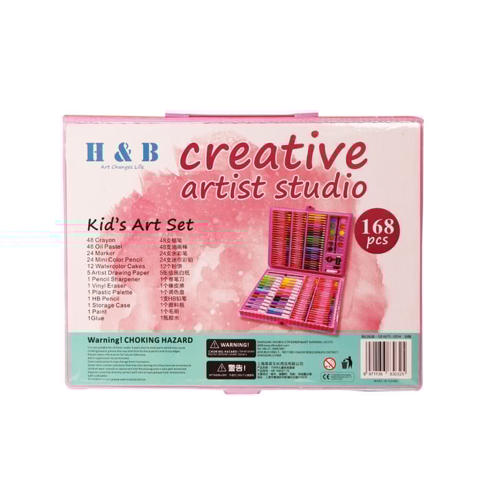 Рисувателният комплект предлага богат набор от 168 материала за рисуване. Чрез него всеки творец ще се потопи изцяло в света на художественото изкуство. Комплектът е идеален за творци от всяка възраст, както и за начинаещи или професионални художници.
