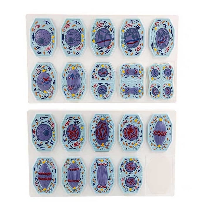 Пластмасов модел на животинска клетка, подходящ за демонстрации в учебни занятия. Състои се от две части изобразяващи мейоза и митоза.