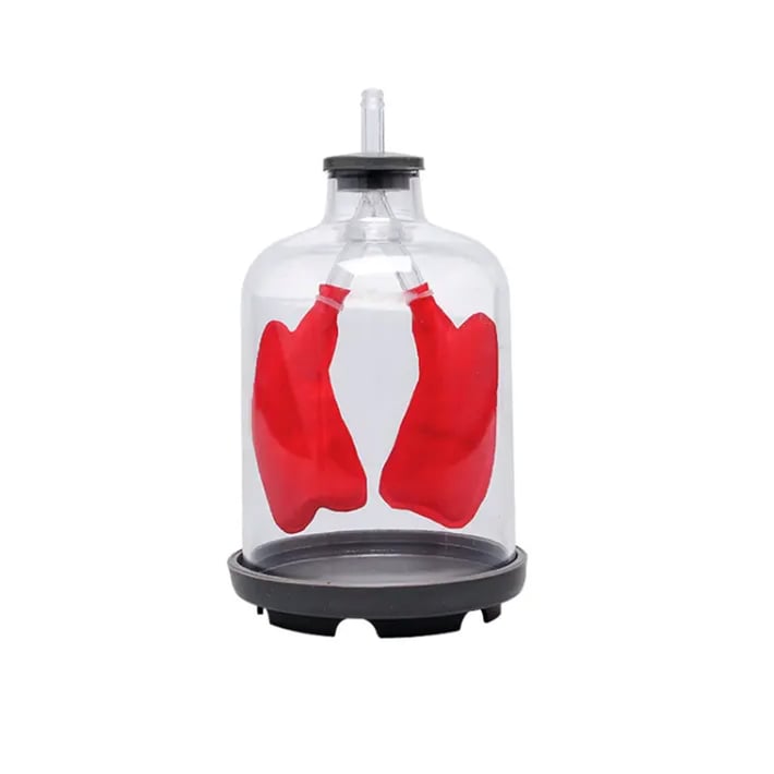 Моделът демонстрира как белите дробове се пълнят и изпразват, благодарение на диафрагмата.
