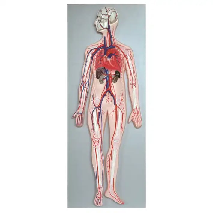 Реалистично представяне на съдовата система, моделът показва и основната структура на човешкия скелет, така че учениците могат да разберат как тя е свързана с кръвообращението.