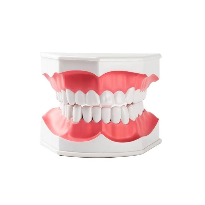 Моделът е подходящ за обучение, свързано с грижата за устната кухина.С 28 зъба от твърда пластмаса, които се отварят на 120 градуса, за да ви позволят да го гледате от различни ъгли.Под зъбите има ластици, които могат да се издърпват нагоре, но не могат да се отстраняват.Материал: PVC.Размери: 15 х 11 х 9 cm.Тегло: 180 g.