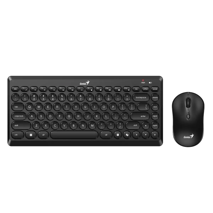 Genius LuxeMate Q8000 е стилен и практичен безжичен комплект, който включва компактна клавиатура и оптична мишка. Благодарение на 2.4 GHz технологията за свързване с USB приемник, получавате стабилна връзка без закъснение и свобода на движение без досадни кабели.Клавиатурата разполага с мултимедийни клавиши за бърз достъп до основни функции като звук, интернет и имейл, а мишката позволява регулиране на чувствителността между 800/1200/1600 DPI за по-точна работа според нуждите ви. И двете устройства са енергийно ефективни и работят с обикновени батерии (2хAAA за клавиатурата, 1хAA за мишката).Комплектът е подходящ както за офис, така и за домашна употреба – лек, удобен и надежден. Genius LuxeMate Q8000 е перфектното решение за всеки, който търси комфорт и функционалност в едно.