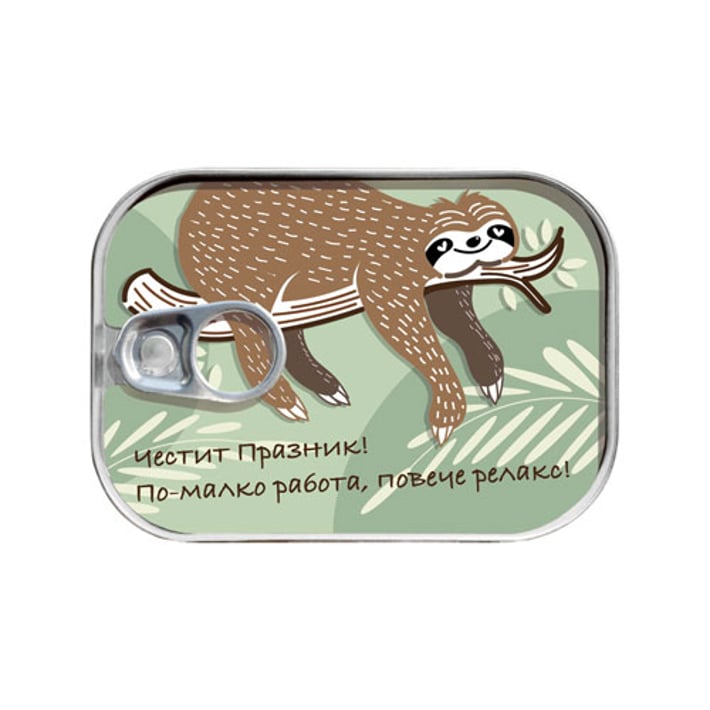 • Kартичката e с дизайн тип консерва.