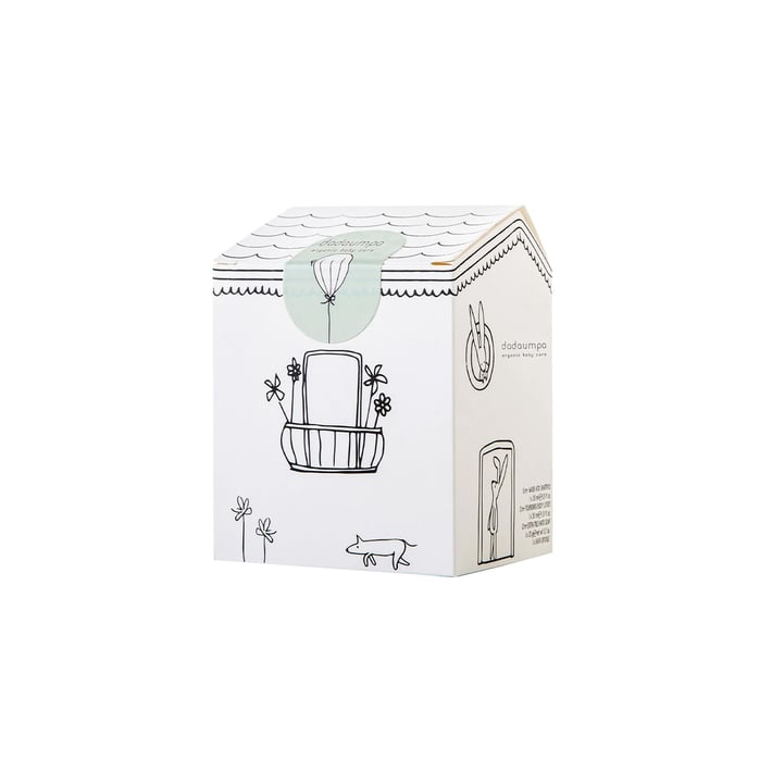 Комплектът съдържа: Органичен шампоан 0+ (30 ml), органичен подхранващ лосион (30 ml), органичен изключителен мек сапун (20 g), гъба за баня.