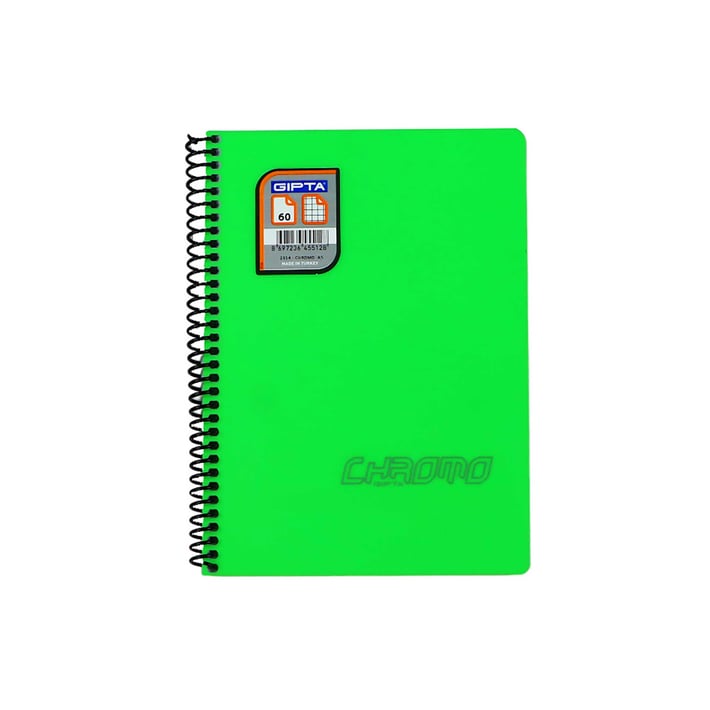 Gipta Тетрадка Chromo, А5, бяла хартия, малки квадратчета 5 x 5 mm, със спирала, PP корица, 60 листа