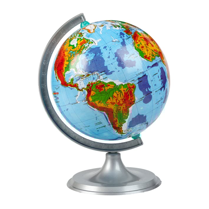 • Портативен политически глобус с малки размери, но с детайлен поглед върху всички океани, морета, континенти и острови на планетата.