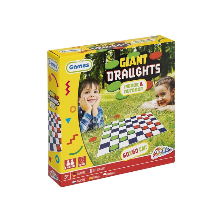 Гигантска игра на дама, подходяща за забавление на цялото семейство! Подходяща както за закрити, така и за открити пространства.