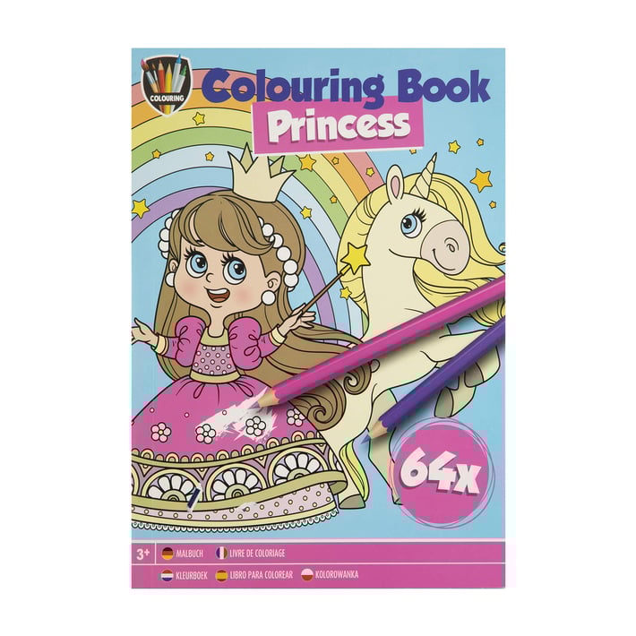 Книжката има 64 страници с контурирани картинки с принцеси.