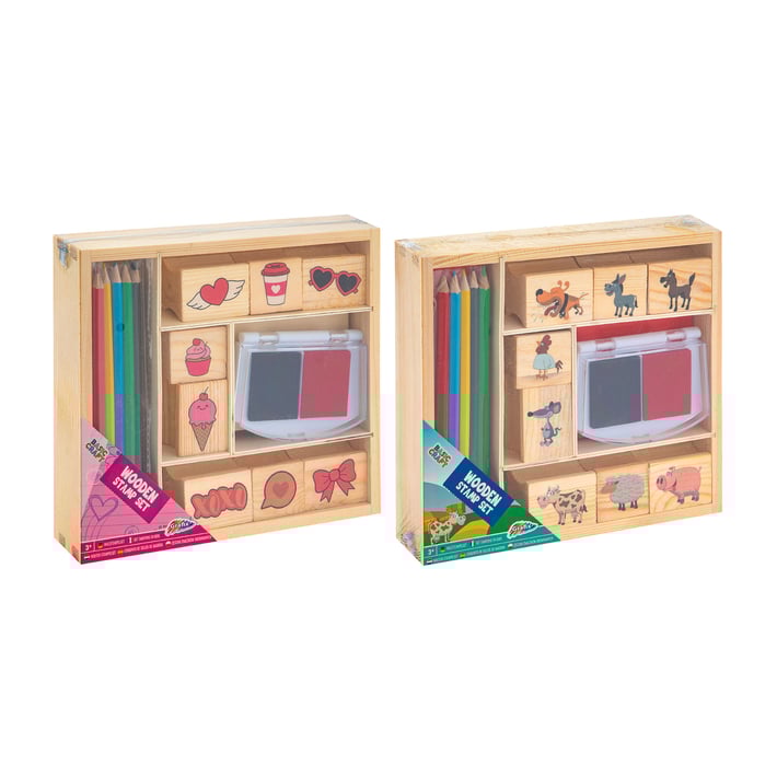 Moxy Комплект дървени печати и цветни моливи, в кутия, асорти, 36 броя