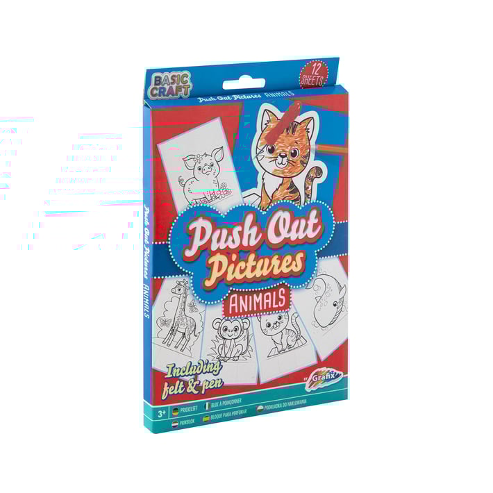 Този занимателен комплект за деца съдържа 12 шаблона за оцветяване с мотиви на животни, инструмент за отделяне на самият шаблон от листа и флумастер.