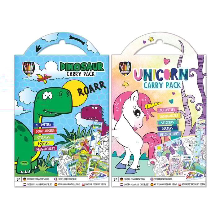 Ще откриете 24 комплекта за оцветяване „Динозавър" и 24 комплекта „Еднорог".