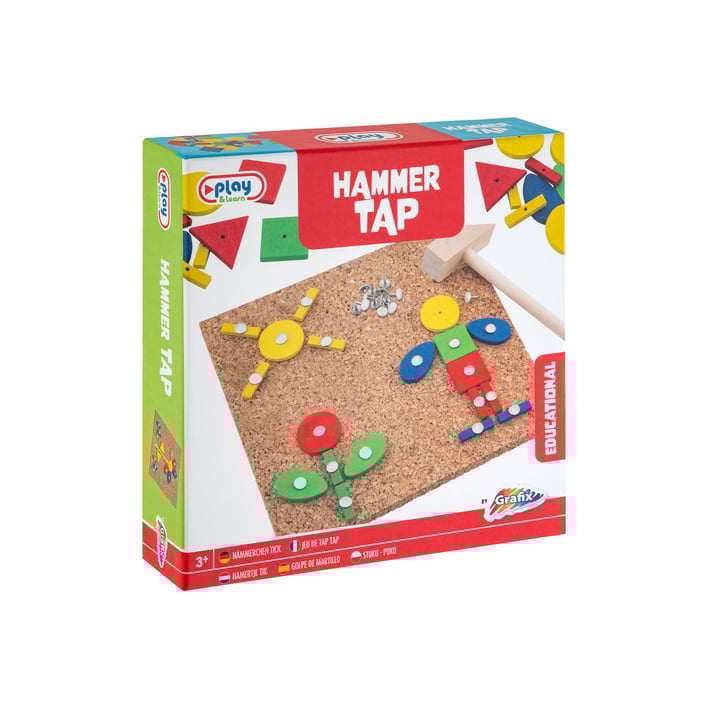 Комплект от дървена мозайка с габърчета, коркова дъска и дървено чукче.