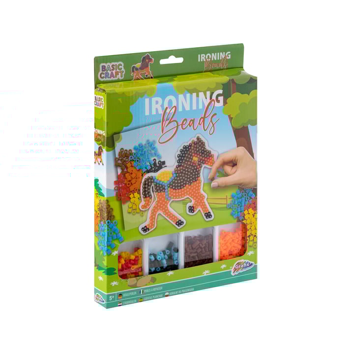 Наредете разноцветните мъниста върху шаблона, за да оформите красива рисунка с открояващи се елементи.