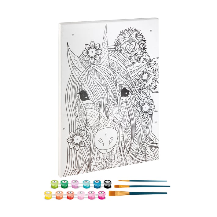 Moxy Платно за оцветяване Еднорог, по номера, с четки и бои