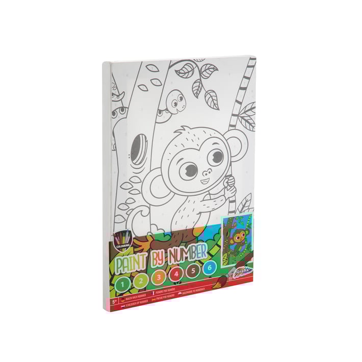 Moxy Платно за оцветяване Маймуна, по номера, с четка и бои, 297 x 195 mm