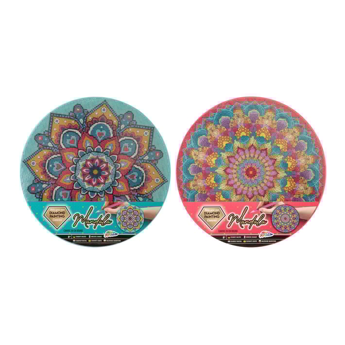 Опаковката съдържа 12 комплекта платна за рисуване с мъниста „Розова Мандала" и 12 комплекта „Зелена Мандала".