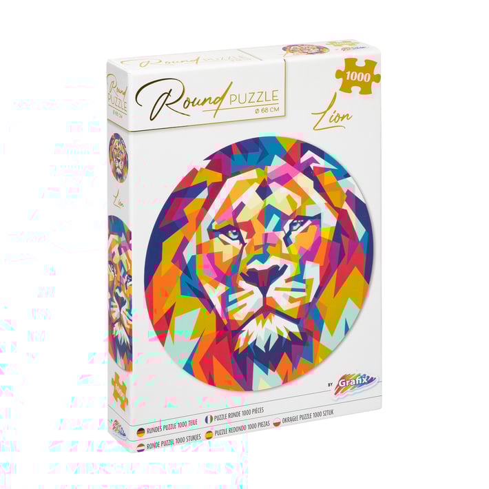 Кръгъл пъзел от 1000 части с цветен лъв.