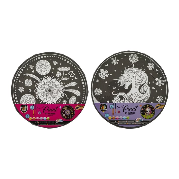 Опаковката включва 12 комплекта за рисуване по номера „Мандала" и 12 комплекта за рисуване по номера „Еднорог".