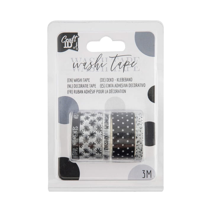 Craft ID Тиксо, с мотиви за декорация, дължина 3 m, 3 броя, черно-бяло