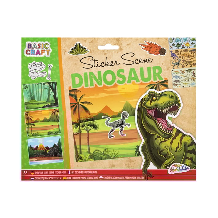 • Комплект забавни стикери с динозаври и 3 включени пейзажа.