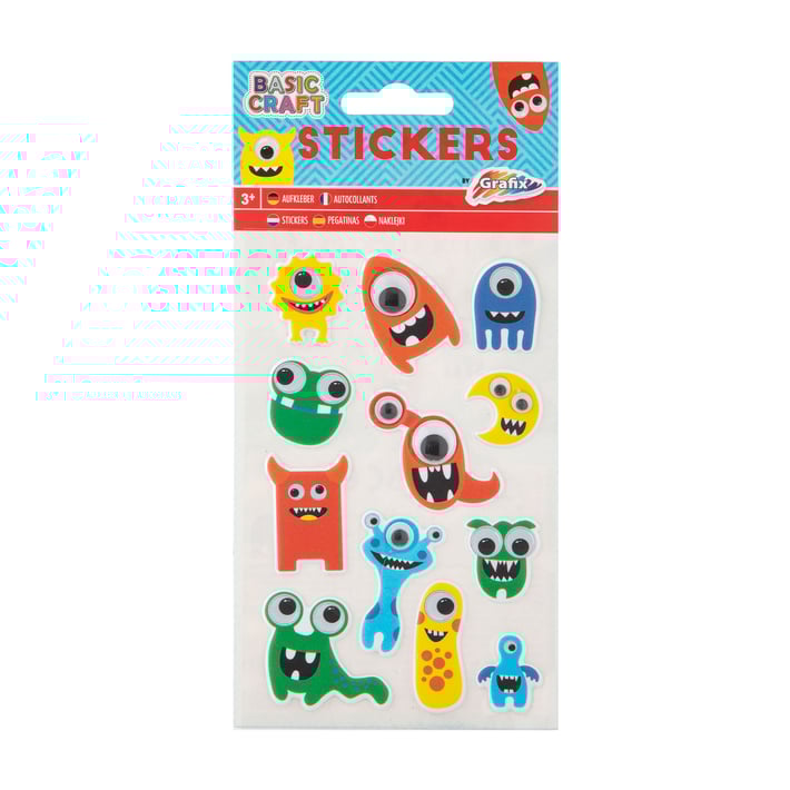 • 12 забавни цветни стикери в различни форми на чудовища!
