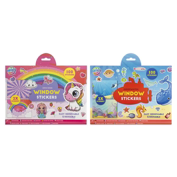 Създайте интересна атмосфера за детето си с тези цветни стикери за стъкло на Moxy.