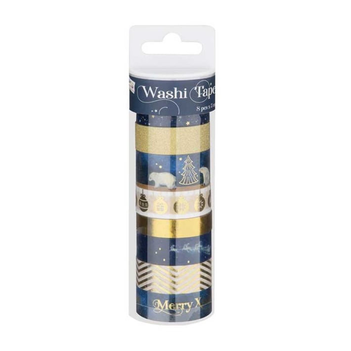 Craft ID Тиксо с коледни мотиви за декорация, 3 m, 8 броя, синьо