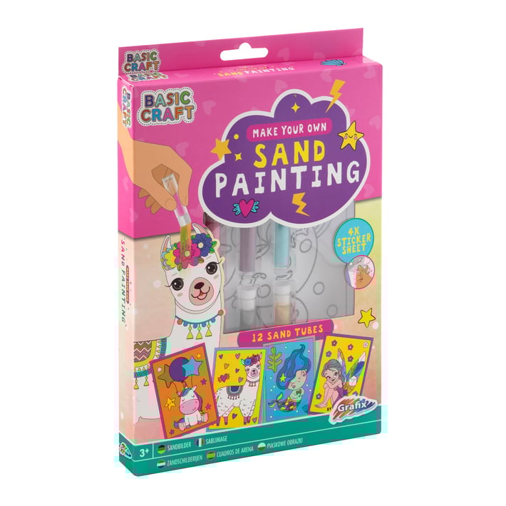 - 4 стикера-шаблони с различни мотиви за оцветяване посредством пясък.