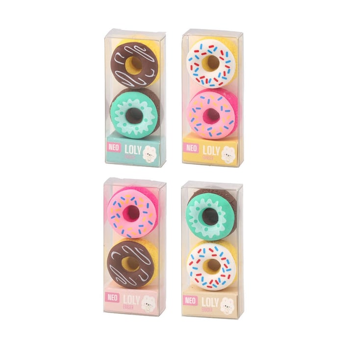 Гума за молив Sazio Loly, донъти, 2 броя, асорти, 1 брой