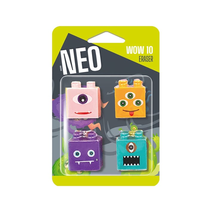 Гума за молив Sazio Wow10, чудовища, 4 броя