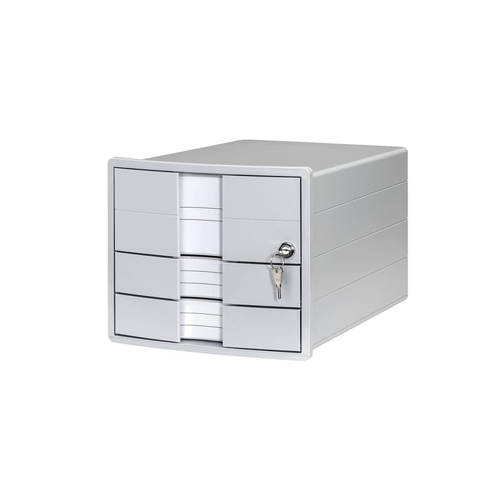 Новите модели HAN Impuls боксове с три чекмеджета с опцията за заключване и горно чекмедже с допълнителна височина отговарят на актуалните изисквания към съвременната офис организация по отношение на защитата на данни и сигурността на документите.