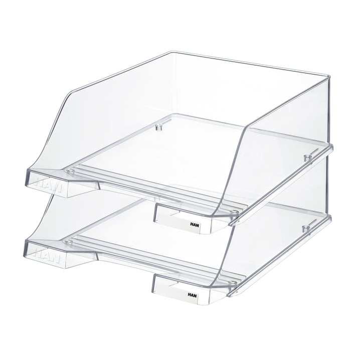 HAN XXL е практична хоризонтална поставка с двоен капацитет. Произведена от висококачествена прозрачна пластмаса без съдържание на тежки метали.
