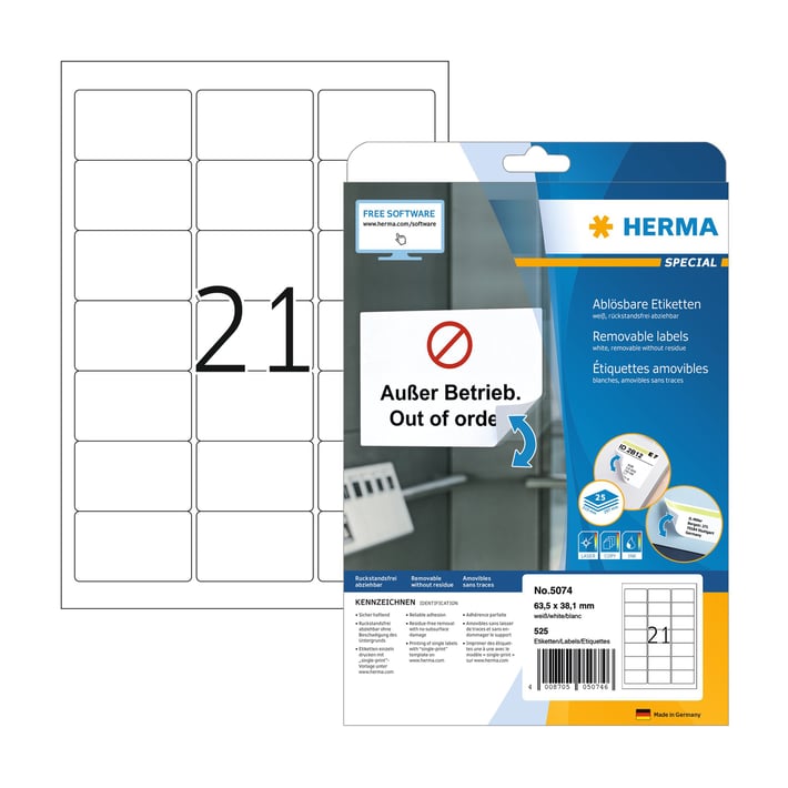 Опаковката съдържа 25 листа с по 21 броя етикети.