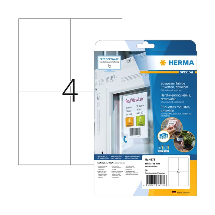 Herma Самозалепващи се етикети от бяло матово фолио.