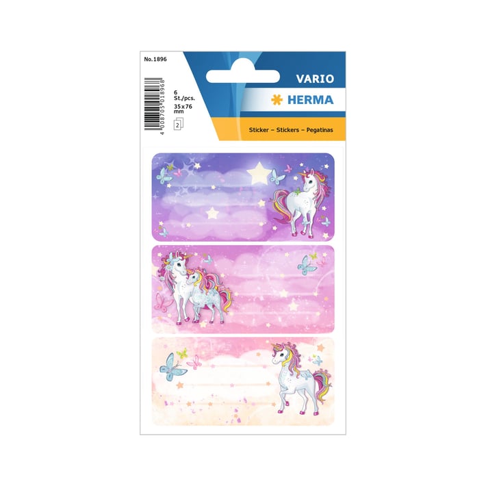 9 практични ученически стикера Herma със забавни илюстрации „Еднорог“.