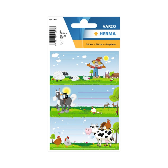 9 практични ученически стикера Herma със забавни илюстрации „Ферма“.