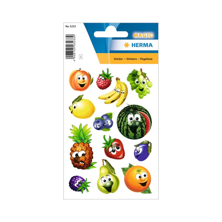 • Забавни самозалепващи се етикети Herma с мотиви „Плодове“ с мърдащи очи.