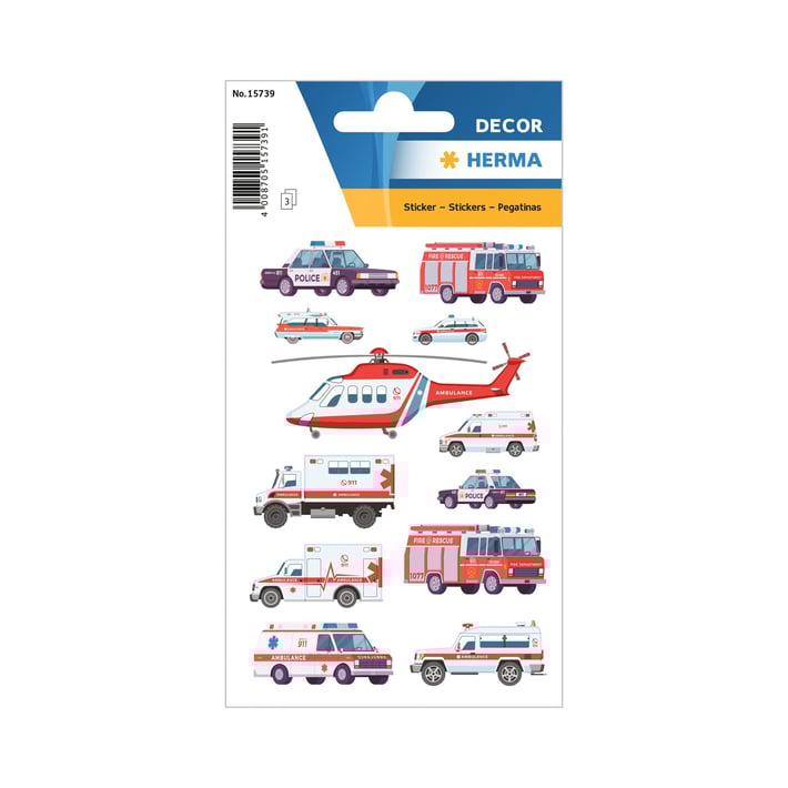 Етикети Herma с красив дизайн с различни превозни средства за спешна помощ.