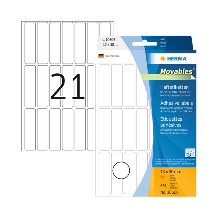 Благодарение на покритието "Free-to-move", HERMA Movables прилепват сигурно към всички гладки, сухи и без прах повърхности.