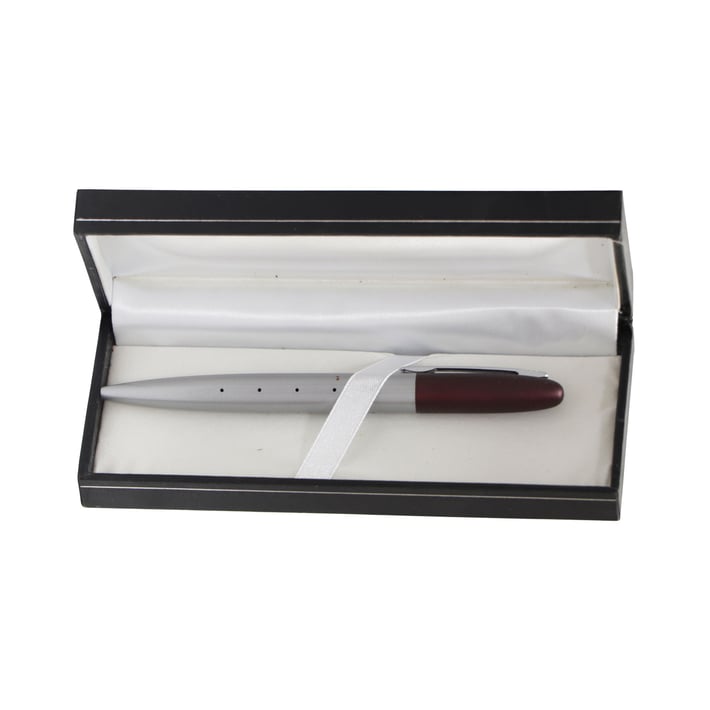 Химикалка с метално тяло и червено и сребристо покритие. Предлага се в стилна подаръчна кутия.