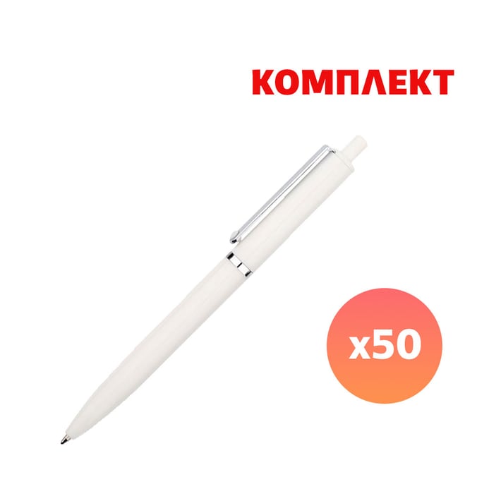 Химикалка Pengo, пластмасова, бяла, с пълноцветен печат, 50 броя