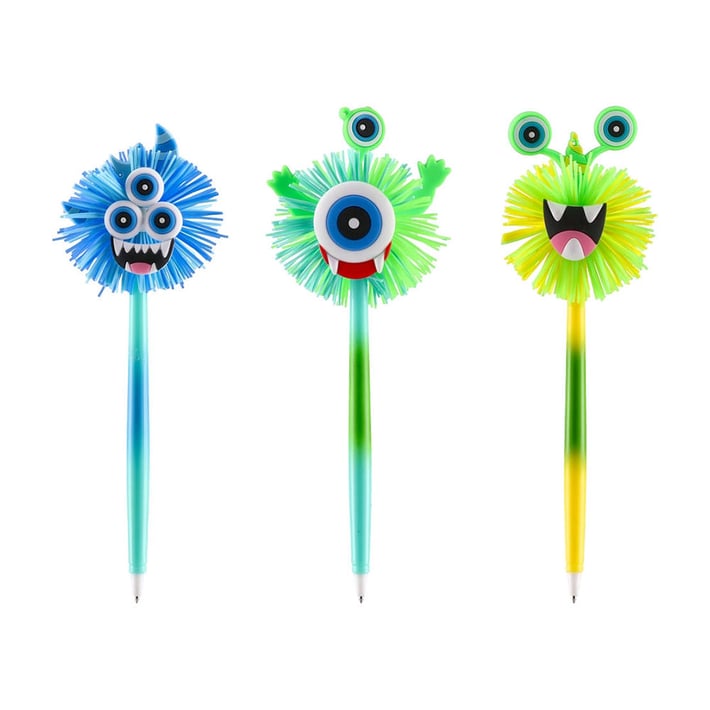 Химикалка SAZIO MACY с атрактивен дизайн и декоративен елемент във формата на извънземно, разположен в горната част на модела. Химикалката е изработена от пластмаса и пише със синьо мастило, като осигурява гладко и удобно писане. Предлага се в разнообразни цветови нюанси и е подходяща за ежедневна употреба в училище, офиса или у дома.