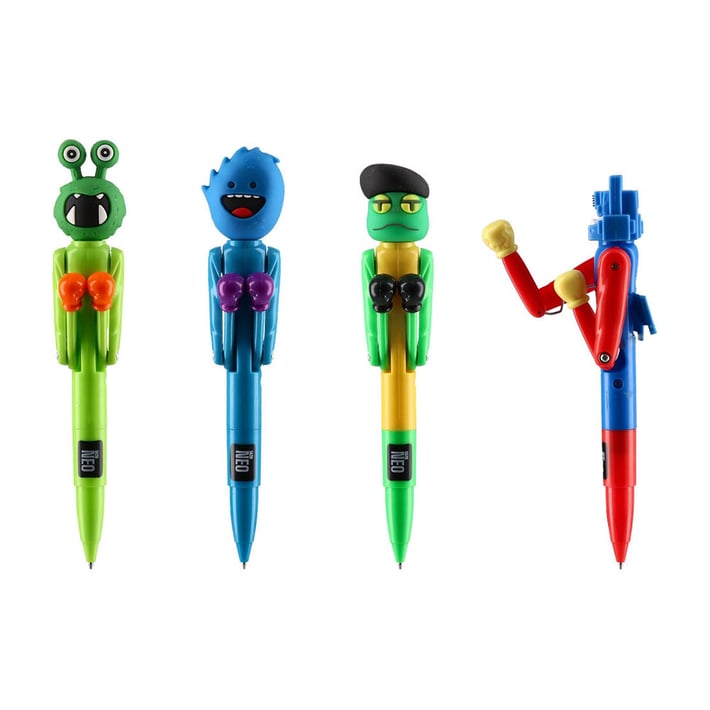 Декоративна химикалка с оригинален дизайн във формата на чудовище. Моделът разполага с подвижни ръце, които могат да се движат и създават забавен „боксиращ“ ефект.