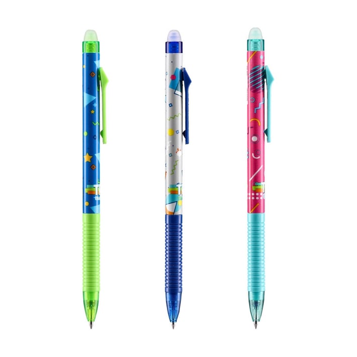 Изтриваема гел химикалка със силиконова гумичка в горната част, която позволява лесно изтриване без оставяне на петна и следи от изтриване.