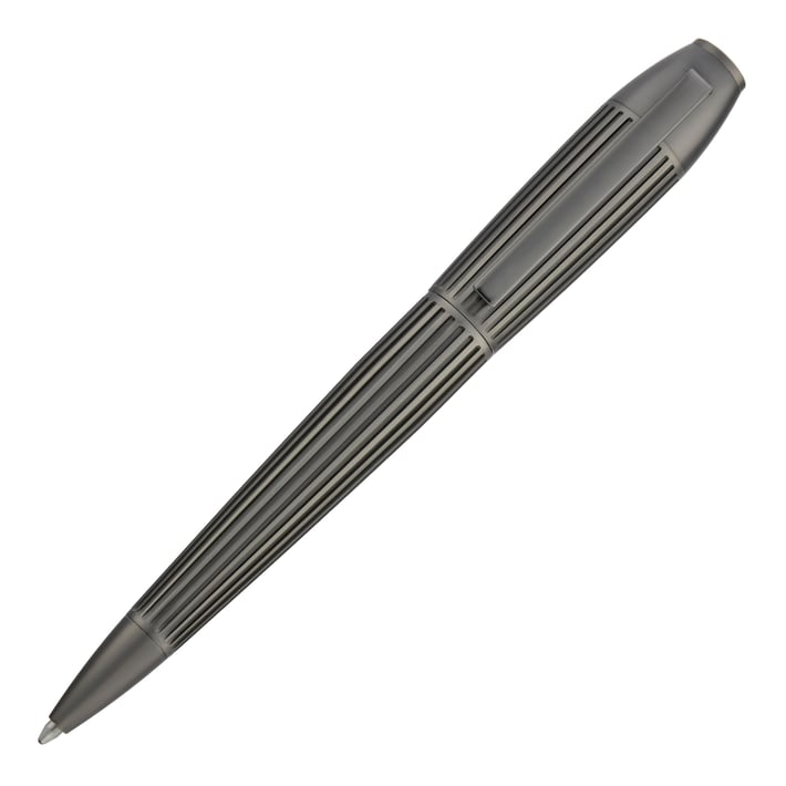 Изискана химикалка, която съчетава сила и елегантност чрез дълбок релефен pinstripe мотив и модерно матово покритие в цвят gunmetal. Прецизната изработка и фините детайли му придават едновременно ценен и ненатрапчив характер, а съвременният му дизайн го превръща в впечатляващ инструмент за писане.