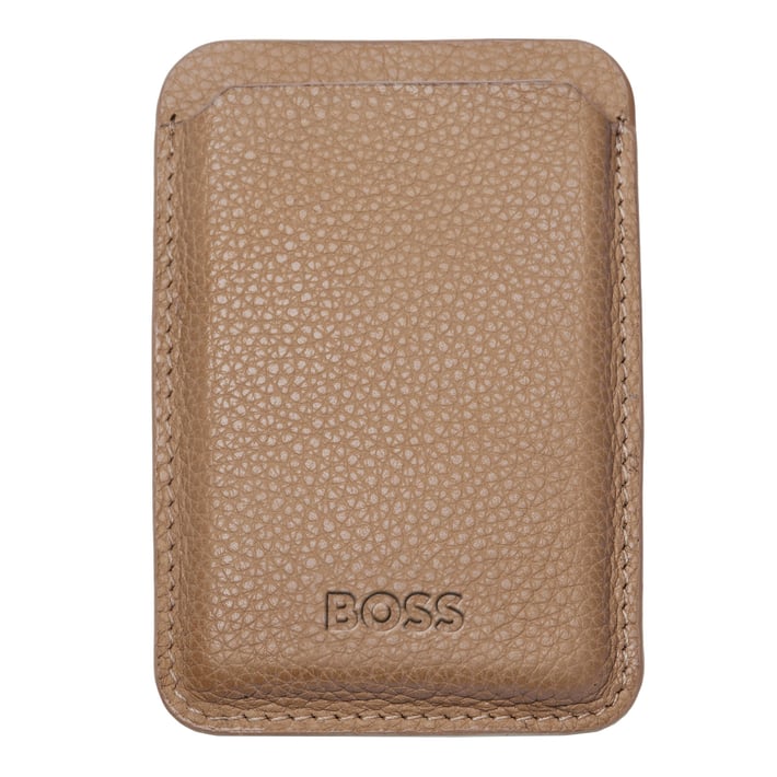 Калъф за карти с MagSafe от серията Classic Grained на Hugo Boss. Калъфът може да се залепи за всеки телефон, който разполага с MagSafe.