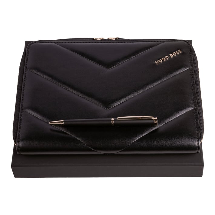 Луксозен комплект химикалка и папка от колекцията TRIGA на Hugo Boss.