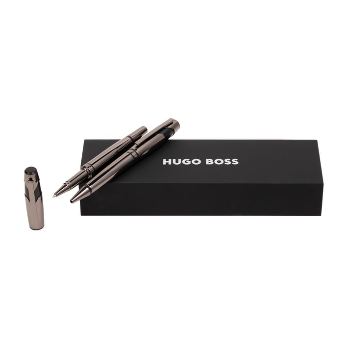 Hugo Boss Комплект химикалка и ролер Chevron, в кутия, тъмнозелени
