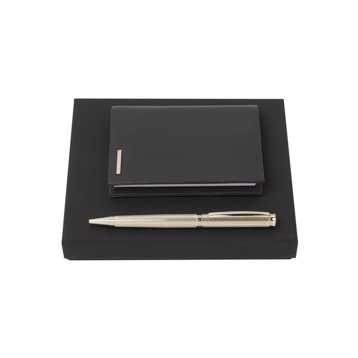 Комплектът Sophisticated на Hugo Boss се състои от химикалка и тефтер А7.