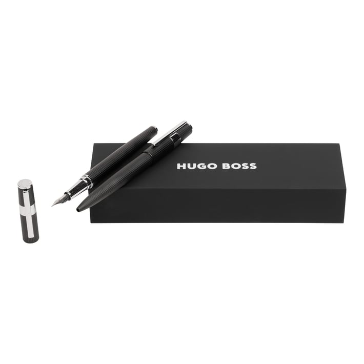 Подобрете начина си на писане с комплекта химикалка и писалка Gear Pinstripe, който е перфектно съчетание от елегантност и функционалност. Писалката, изработена в поразително черно и хромирано покритие, въплъщава изтънченост с елегантния си дизайн и гладкото синьо мастило. Нейната месингова конструкция, украсена с матов лак, гарантира издръжливост, като същевременно предлага луксозно усещане в ръката ви.